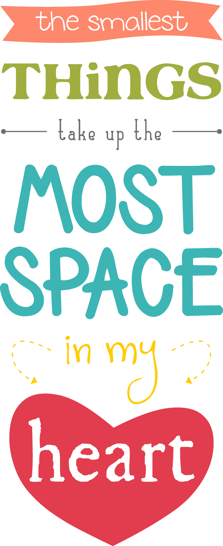 Sometimes I want to scrap a photo and don’t have much to journal… it’s just a feeling, you know? That’s why this design – the smallest things take up the most space in my heart – sort of says it all. It’s probably easy to gush about my kids, but it’s not always something I want to write out. Our beautiful little boy… it was enough with the word art, clean and simple design. I created the word art as a free printable the smallest things take up the most space in my heart and made a scrapbook page with it.