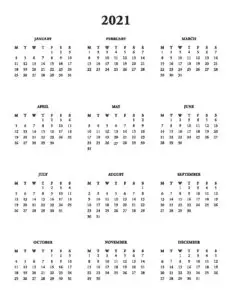 2021 Yearly Calendar Printable