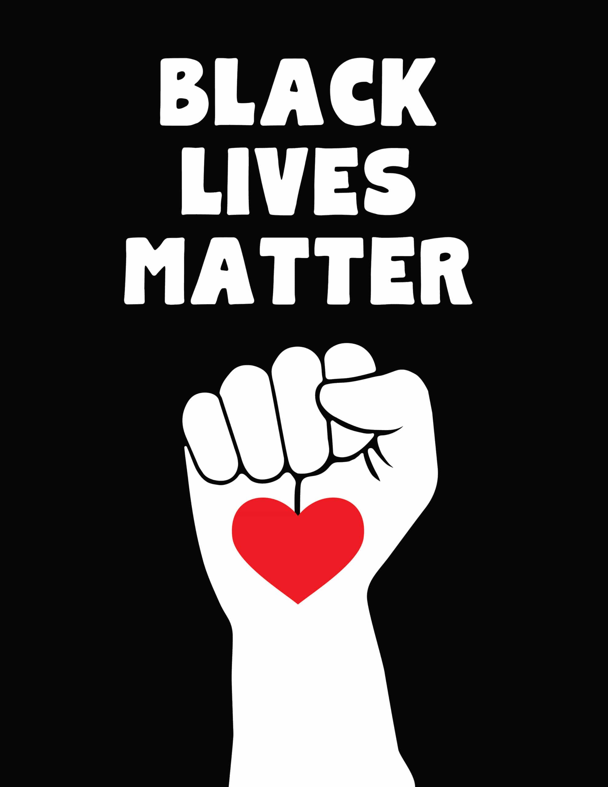 Black lives matter on black with fist heart design