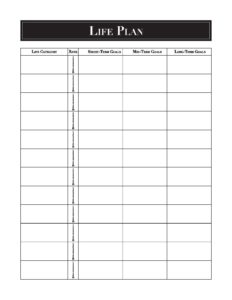 Life Planning Template 12 rows